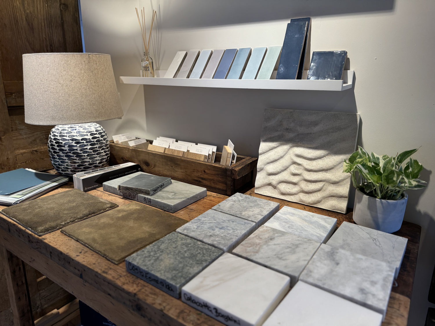 Samples of tile and stone, fabric, and paint colors are available in-Studio for consultations, making all your decisions easier!