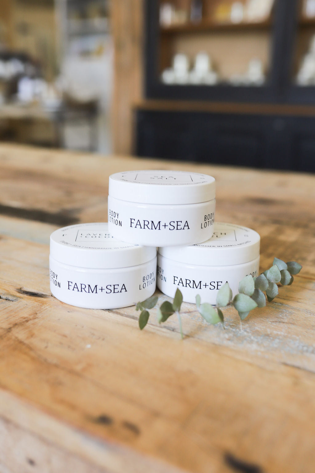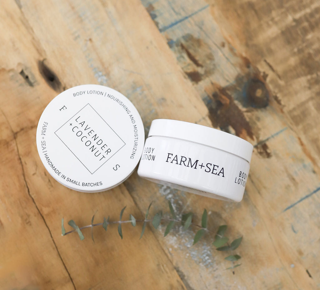 Farm + Sea body lotions will leave your hands and body moisturized and soft. All lotions are paraben-free. All lotions are made with a blend of shea butter, sunflower & coconut oils, and aloe, and fragranced with cosmetic, phthalate-free fragrance oils.